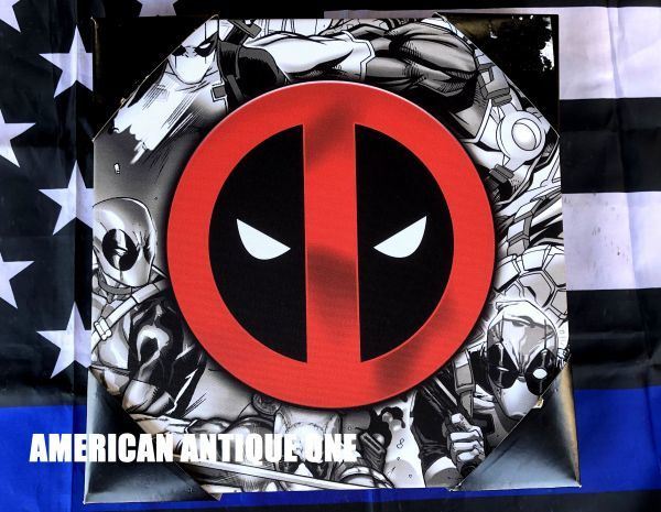 【新品 大きめ31cm デッドプール マーベル アメコミ 木製 キャンパスボード 看板 壁掛けOK!!】
