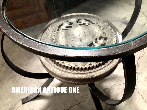 【斬新でお洒落なデザイン^^ ベストサイズ77cm センターガラステーブル 立派な石膏装飾 アンティーク家具】