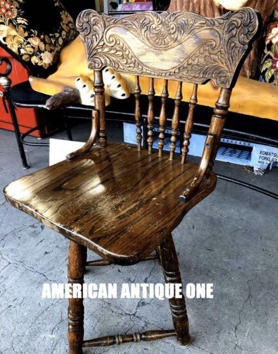 【お洒落デザイン^^ 回転式チェアー ベストサイズ85cm 木製 イス アンティーク家具】