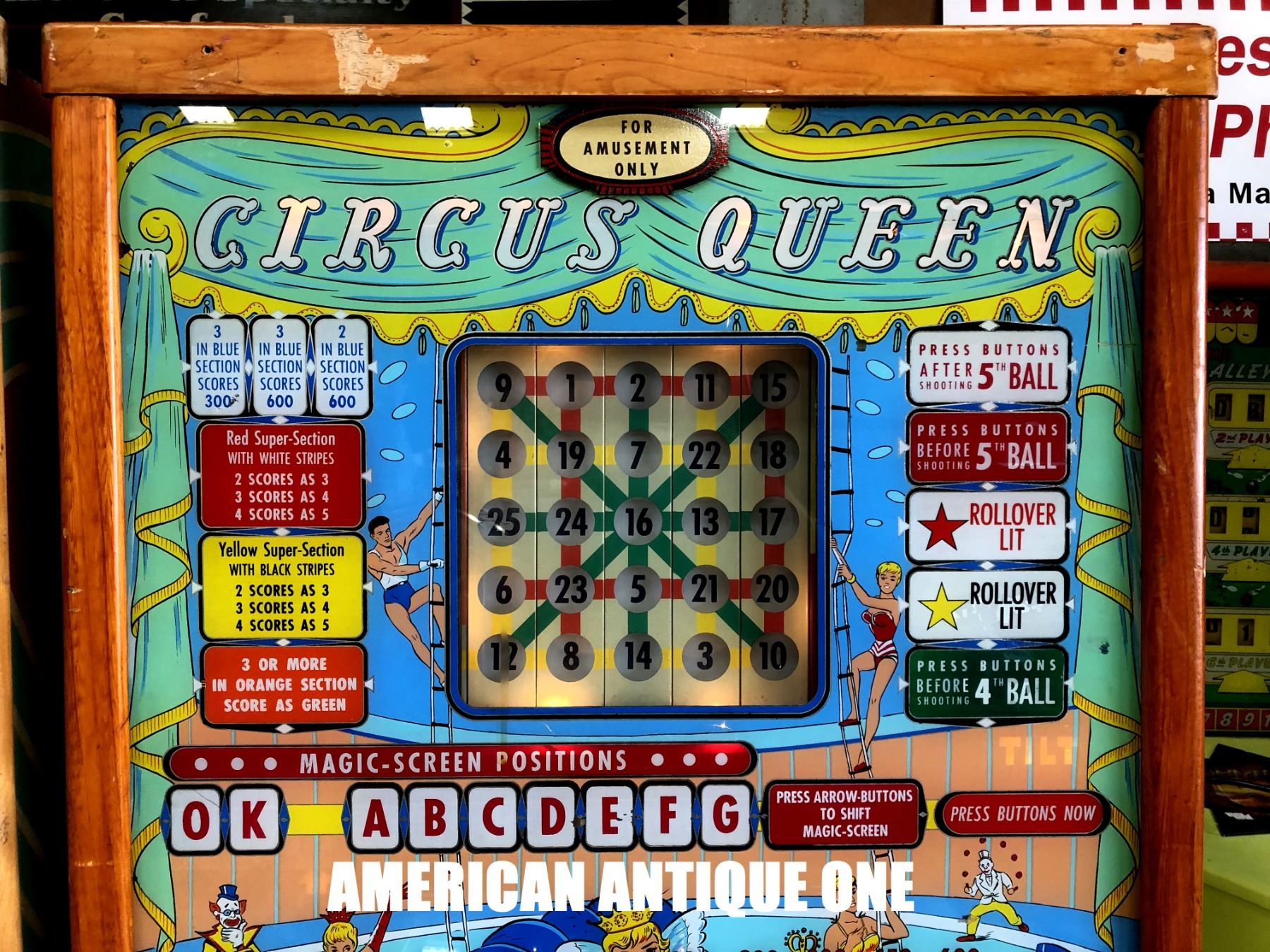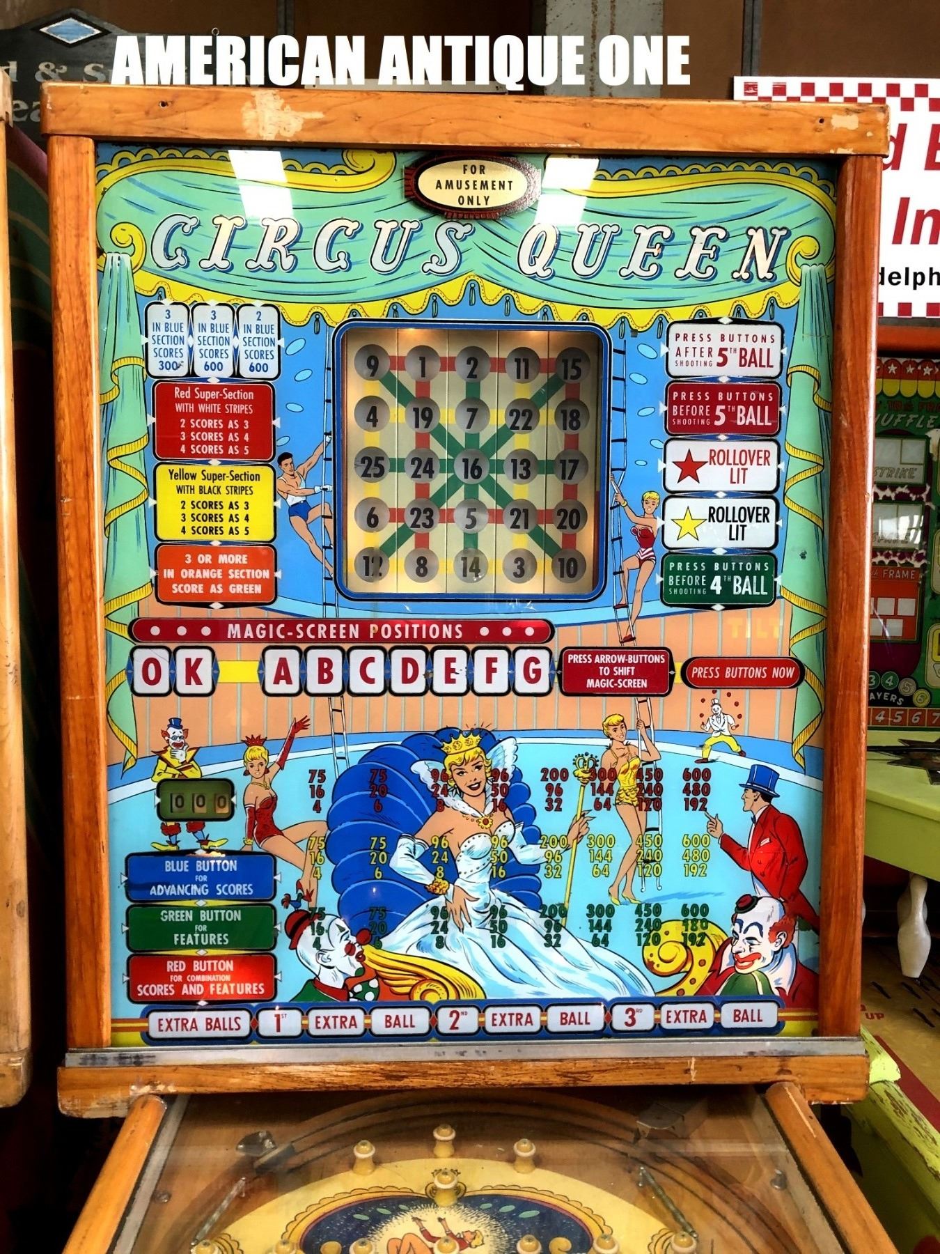 Circus Queen Bingo Machine Vintage